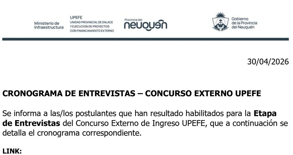 30 Abr 2026Desarrollo Humano, Noticias Destacadas CRONOGRAMA DE ENTREVISTAS – CONCURSO EXTERNO UPEFE https://www.myqnapcloud.com/share/7764700kn2opo682t786034b_cf200fj2m017266p1930w2yy966be7h5#!/home